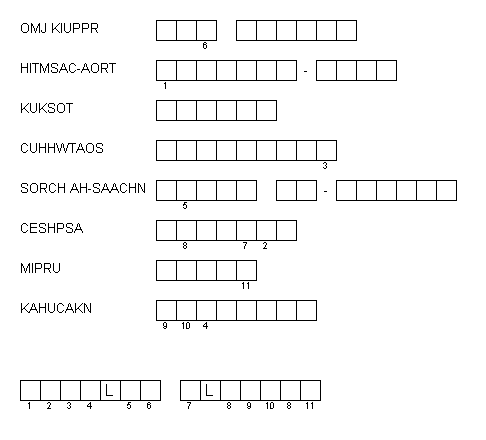 Jüdische Feste im JahreslaufUnscramble each of the clue words.Copy the letters in the numbered cells to other cells with the same number.